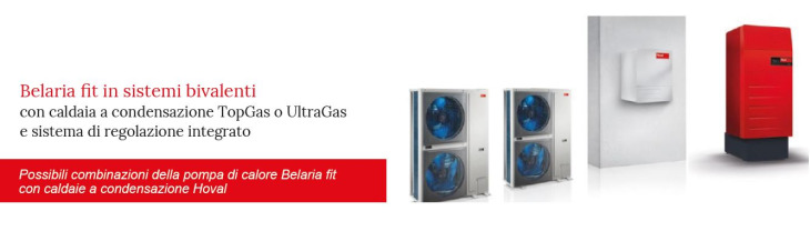 La versatilità si caratterizza infine per la possibilità di gestire una fonte secondaria di energia, sia essa un pannello fotovoltaico, un pannello solare termico o una caldaia. Pertanto, le pompe di calore Belaria fit di Hoval possono adattarsi agevolmente anche in quei contesti dove risulta difficoltoso intervenire sull’isolamento dell’involucro abitativo e adeguare i terminali esistenti o dove sussistono vincoli di spazio interno molto restrittivi.