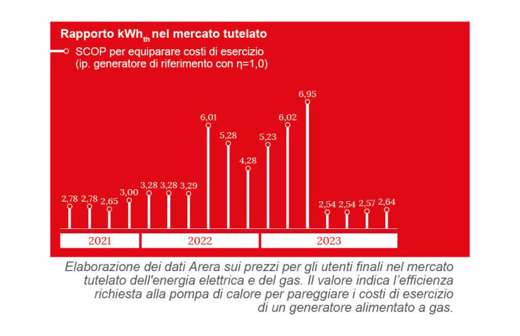 Nonostante la circoscritta incertezza legata al conflitto russo-ucraino, persino per un Paese come il nostro, tra i meno convenienti nel rapporto di costi kWhel/kWhth, ci sono ampi margini di economia nell’utilizzo della pompa di calore.