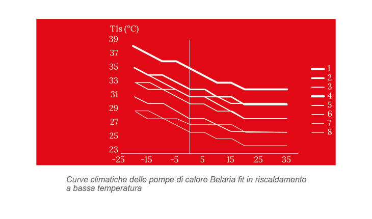 Le pompe di calore Belaria fit integrano una serie di funzionalità che permettono di alzare ulteriormente il livello di efficienza complessiva raggiungibile dall’impianto: possono gestire più zone a temperature diverse, ottimizzare la temperatura di mandata dell’acqua grazie a una serie di curve climatiche pre-impostate e modificabili, integrare l’apporto di un sistema solare termico o fotovoltaico ed efficientare il funzionamento in cascata con un generatore di calore supplementare.