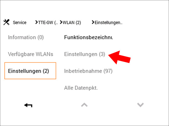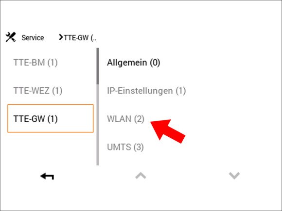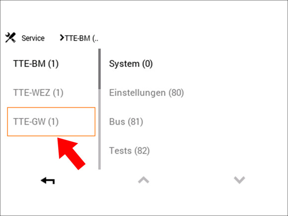 Nota: se l'opzione "TTE-GW" non è direttamente visibile, faccia clic sul tasto freccia in basso a destra per scorrere verso il basso finché non viene visualizzata la voce di menu "TTE-GW".