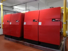 Per la sostituzione dei vecchi generatori di calore, è stata scelta la tecnologia a gas a condensazione, con due caldaie Hoval UltraGas 800 D, costituite da due unità da 400 kW l’una. In totale sono stati quindi istallati 4 moduli, collegati tra loro in cascata, per una potenza totale di 1600 kW. Assemblati in questo modo, offrono infatti maggior sicurezza di esercizio e migliore efficienza, grazie a un adattamento della potenza e alla distribuzione del carico ottimizzati. La funzione di regolazione dell'intera cascata è inoltre già integrata nel regolatore di sistema Hoval TopTronic E delle singole caldaie.