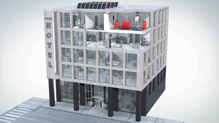 Gli ospiti che trovano condizioni confortevoli e favorevoli al loro benessere sono invogliati a tornare. La scelta di una soluzione Hoval per un hotel, un albergo o una pensione è garanzia di calore, acqua calda a sufficienza e aria fresca. L’acqua viene riscaldata in base ai più rigorosi standard igienici, escludendo così qualsiasi rischio di legionella. Le spese correnti sono contenute, i costi di manutenzione minimi e l’impronta ecologica relativamente bassa. Questa è l’esperienza di ospitalità da offrire oggi.