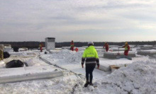 Era inverno, faceva freddo, la neve ricopriva tutto. Per fortuna gli apparecchi di ventilazione per grandi ambienti Hoval RoofVent ‘sono facili da installare: vengono forniti pronti all'allacciamento. Questa volta sono17 i ventilatori industriali a soffitto RoofVent pronti per essere installati. Sul tetto di un altro dei suoi centri di distribuzione, la società di logistica dei generi alimentari ha già 11 apparecchi RoofVent in funzione.