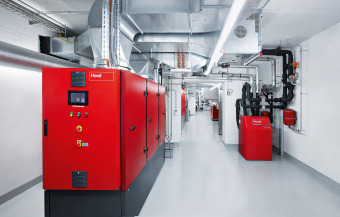 Ci sono poi le caldaie a gas e a gasolio: una centrale termica che alimenta una rete di teleriscaldamento a breve raggio. La caldaia doppia Hoval UltraOil (600D), con una potenza termica di 600 kW, funge da generatore ausiliario. Dal momento che alla rete di teleriscaldamento a breve raggio sono allacciati, tra l'altro, una piscina, scuole, case di cura e di riposo, il gestore della stessa, l'azienda di distribuzione del gas del Liechtenstein LGV, non ha voluto affidarsi ad un unica fonte energetica. La caldaia a condensazione a gas UltraGas (1000), con un intervallo di potenza termica compreso tra 205 e 925 kW, funge da copertura dei carichi di picco.