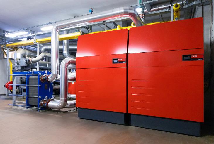 Il fabbisogno termico del complesso era pari a 2850 kW. Il progettista, che conosceva già gli impianti Hoval, ha optato per l’installazione di un nuovo sistema di generazione del calore, costituito da due caldaie UltraGas 2 3100 D. La presenza di due generatori e quindi la ridondanza dell’impianto consente di coprire anche il fabbisogno che si viene a creare in particolari periodi di punta della stagione invernale, permettendo anche di poter contare su un notevole apporto di acqua calda, necessario per soddisfare le esigenze di una struttura così ampia. In caso di eventuali problemi a uno dei due generatori, inoltre, la presenza di una seconda caldaia permette di rispondere alle necessità di riscaldamento della struttura.