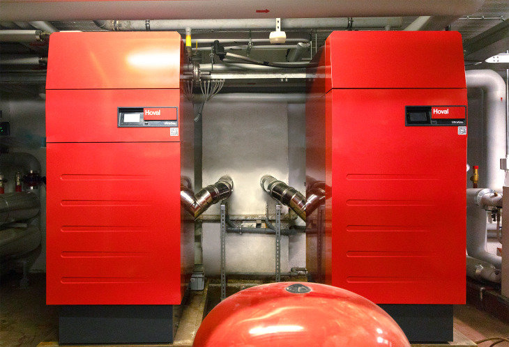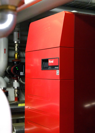 Hoval UltraGas 2 da 230 kW, ciascuna ad altissimo rendimento e a temperatura scorrevole. Questi generatori rappresentano una soluzione particolarmente efficiente per il riscaldamento degli edifici, poiché consentono di ridurre al minimo le dispersioni termiche e ottimizzare il consumo di energia. Il sistema è stato completato da uno scambiatore di calore a piastre, che permette di disaccoppiare le nuove caldaie dall’impianto esistente, migliorando ulteriormente la sicurezza e la gestione dell’impianto.