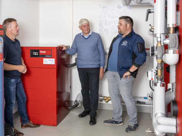 Hoval è stato l’unico fornitore a offrire una soluzione ibrida in cui la pompa di calore e la caldaia a condensazione a olio combustibile sono compatibili e comunicano perfettamente tra loro.