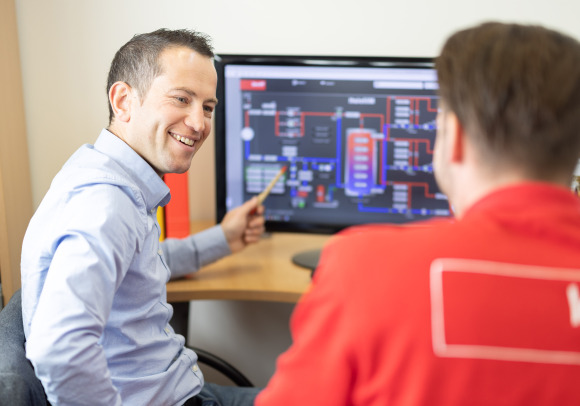 La gestione di un impianto termico richiede tecnologia di alto livello, affidabile e performante. Le stazioni di trasferimento termico consentono il trasferimento del calore agli edifici collegati, eliminando la necessità di impianti di riscaldamento autonomi. Il nostro servizio di assistenza clienti Hoval è sempre a vostra disposizione per garantire un funzionamento efficiente di tutti gli collegamenti. Il sistema è supportato dalla nostra tecnologia avanzata di controllo e regolazione Hoval, che visualizza tutti i componenti direttamente sul vostro computer.
