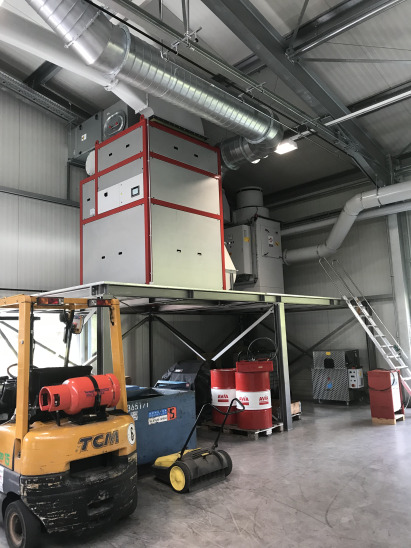 Il ProcessVent è stato dotato di batterie di riscaldamento / raffrescamento per il post-riscaldo e il raffreddamento dell'aria immessa. Il medium riscaldante e raffrescante è generato centralmente tramite pompe di calore, venendo regolato e monitorato attraverso un moderno sistema di gestione dell'edificio. Grazie all'armonico gioco di squadra di ambedue i componenti (ProcessVent e depurazione dell'aria) è possibile conseguire un bilanciamento del flusso d'aria nel capannone, a garanzia di gradevoli condizioni nell'area lavorativa e di elevata efficienza energetica. Dipendenti contenti, risparmio sui costi e un attivo contributo alla salvaguardia dell'ambiente in un unico sistema completo.