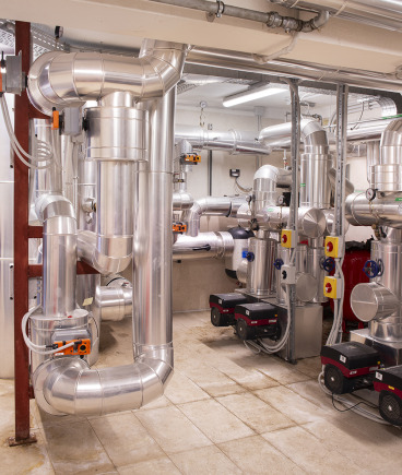- Due pompe di calore geotermiche Hoval Thermalia dual R, collegate a un nuovo campo geotermico costituito da 20 sonde verticali profonde fino a 190 metri;