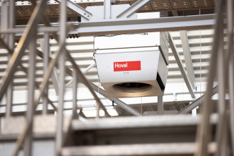 "La nostra soluzione di clima interno deve garantire l'approvvigionamento di aria fresca nel capannone chiuso. Allo stesso tempo, si devono rispettare le specifiche igieniche che si applicano nella produzione alimentare". Kröpfel cita anche la facilità di manutenzione dei sistemi e la possibilità di recupero del calore come ulteriori criteri. Spitz ha scelto una soluzione decentralizzata per il clima interno della Hoval, composta da sei unità RoofVent per la ventilazione e tre unità di ricircolo TopVent.