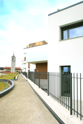 Un tempo qui sorgeva un’azienda di floricultura: dopo la sua dismissione, sette anni fa si è deciso di costruire un complesso residenziale di lusso, che doveva inserirsi in modo coerente all’interno del paesaggio, mantenendo intatta la morfologia della collina con il minimo impatto ambientale possibile. Il progetto dello Studio dell’architetto Michele Bertarelli ha previsto la realizzazione di un complesso di 40 unità abitative, distribuite in tre differenti corpi di fabbrica, di due piani fuori terra ciascuno.