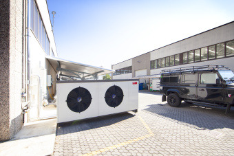 “La vecchia caldaia – spiega Fabio Ciprian, che ha installato l’impianto, aveva una potenza sovradimensionata (250 kW) rispetto al reale fabbisogno dell’edificio. Tenendo conto anche delle esigenze del cliente, abbiamo deciso di utilizzare un impianto ibrido: una pompa di calore Hoval Belaria dual AR (60), abbinata a una caldaia a gas a condensazione di ultima generazione ad alto contenuto d’acqua Hoval UltraGas 100. Abbiamo potuto utilizzare l’ impianto a pavimento radiante preesistente, che ha permesso di ottimizzare le prestazioni della pompa di calore, che viene tra l’altro utilizzata anche per il raffrescamento estivo. Nelle giornate di sole la pompa di calore, alimentata con l’energia autoprodotta tramite un collegamento in smart grid, copre il fabbisogno termico anche senza il supporto della caldaia a gas a condensazione."