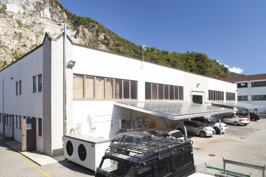 Sul retro dell’edificio, a supporto del Service, sono state di recente realizzate due tettoie di copertura per una decina di posti auto: un intervento che si era reso necessario per garantire un’opportuna protezione dalle intemperie alle auto in attesa di manutenzione o già pronte per il ritiro, considerando la sempre più frequente incidenza di fenomeni atmosferici estremi. Sulla copertura è stato installato un impianto fotovoltaico, collegato a una colonnina di ricarica per auto elettriche. I pannelli solari producono l’energia necessaria per alimentare una pompa di calore che è stata installata per sostituire il precedente impianto di riscaldamento, ormai vetusto ed energivoro. La pompa di calore è integrata in un impianto di riscaldamento con sistema ibrido dotato anche di caldaia a condensazione che interviene nei periodi più freddi, quando la pompa di calore non è sufficiente per coprire il fabbisogno termico dell’edificio. Il tutto gestito da un unico sistema di termoregolazione.