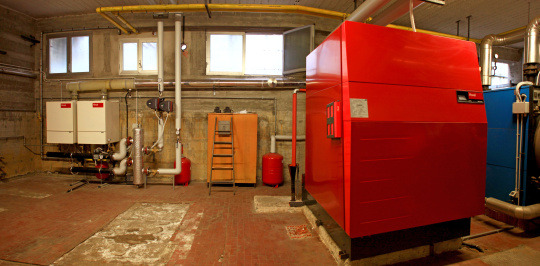 Tecnologie installate: 2 caldaie murali TopGas classic; 2 scaldacqua con scambiatore di calore Combival; 1 caldaia a condensazione ad alta efficienza Hoval Ultragas 1000; sistema di regolazione TopTronicE